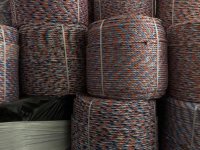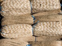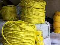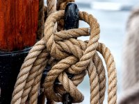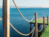 Banister with thick ropes on pier over sea in Akcay, Turkey.