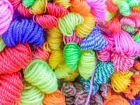 Bunch or bundle of circular nylon plastic coil cord. Seamless colorful abstract pattern design of decorative element object. Backdrop, background, texture or decoration concept. Studio shot, Close up.